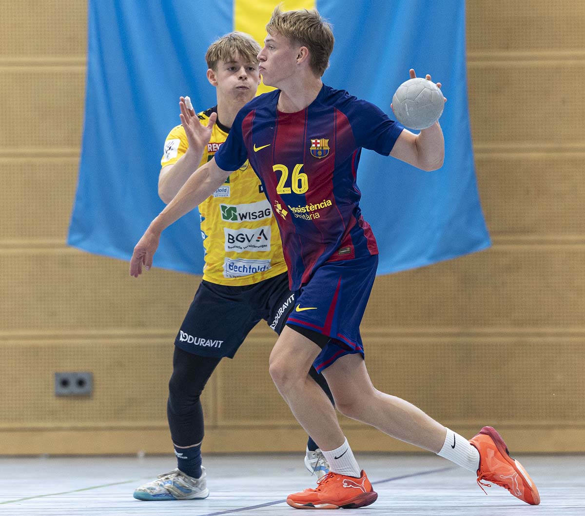 Napilt kaks nädalat pärast Barcelonasse jõudmist, täpsemalt 24. augustil, sõitis Aron Sepp Barcelona U17 võistkonna koosseisus esimesele võistlusele Saksamaale – Düsseldorfis toimunud kolmepäevasele rahvusvahelisele noorteturniirile: „Esimese mängu seitsmendal minutil saatis treener mind sooja tegema, sain aru, et nüüd on minek. Soojenduse ajal mõtlesin, et närv peaks sees olema, aga olin täiesti rahulik. Mäng läks hästi, viskasin neli-viis väravat, võitsin treenerite usalduse ja teises mängus olin juba põhikoosseisus. Kokku sain sel võistlusel üllatavalt palju mänguaega.“