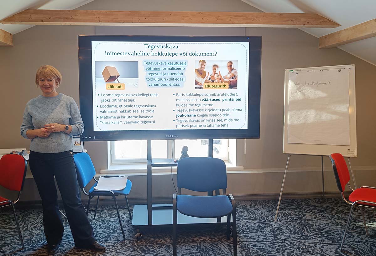 Koo­li­ta­ja MAI TIM­MI rää­kis ko­gu­kon­da­de sih­ti­de seadmisest ja koos te­gut­se­mi­sest.
