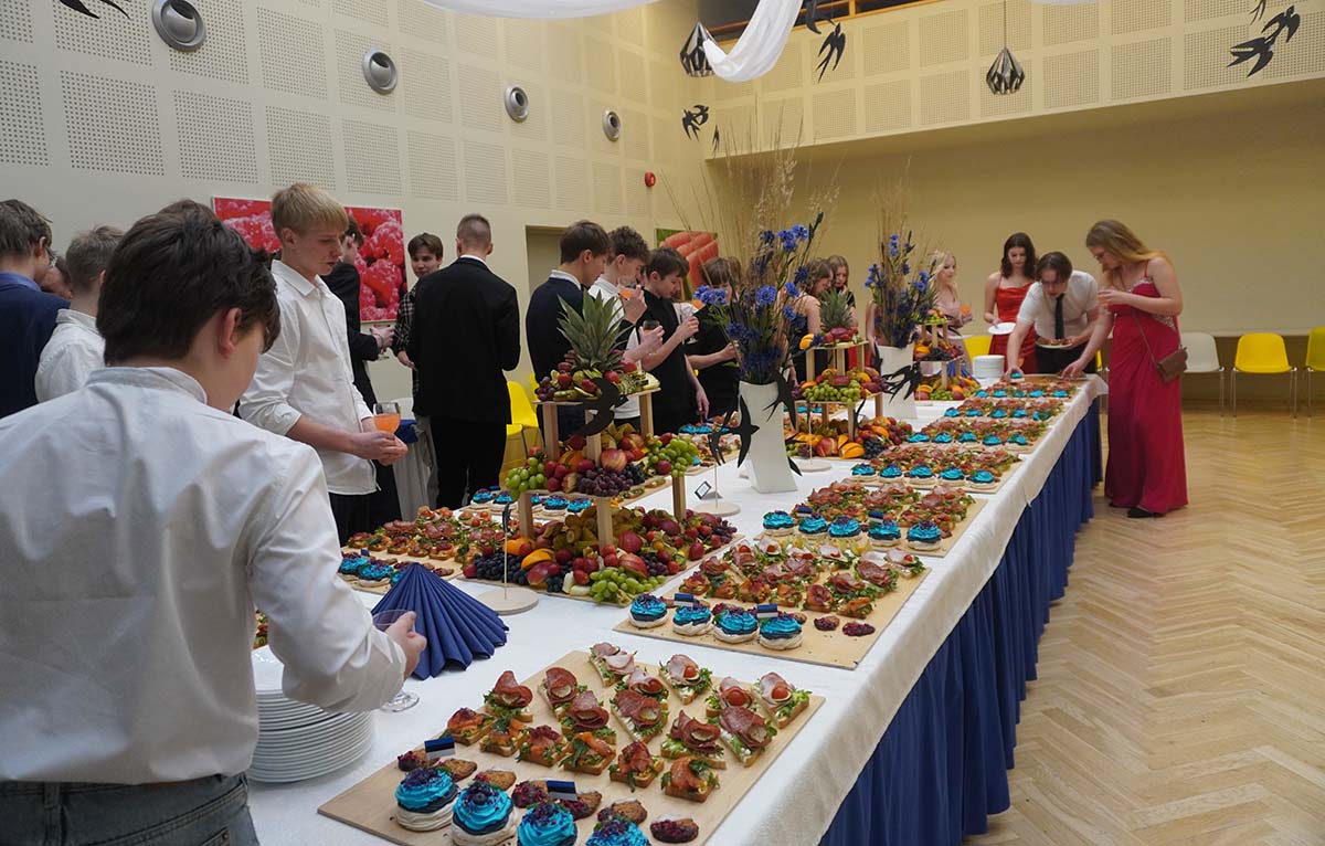 Pika vastuvõtulaua suupisted valmistasid kooli kokad, neid abistasid õpetajad ning ka tüdrukud küpsetasid käsitöötunnis. Tehnoloogiaõpetaja valmistas puidust lipualused ja lauakaunistuseks suitsupääsukesi, mille värvisid 4. klassi õpilased. AS Mistra-Autex tasus sinimustvalge taustaga fotopeegli eest, selle ees sai ballil teha pilti ja foto välja printida.