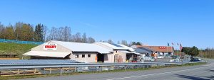 Praeguse asukoha said tänu sellele, et olid pannud suunava sildi viadukti juurde risttee lähedusse, sealsamas oli endine väike sidemaja, mida kasutas tookordne TREV. Hoone oli jäänud tühjaks ja pakuti neile tingimusel, et hoiavad ala korras. Kaks aastat hiljem, 1996. aasta kevadel avati ehitusmaterjalide pood juba selles praeguses paigas.