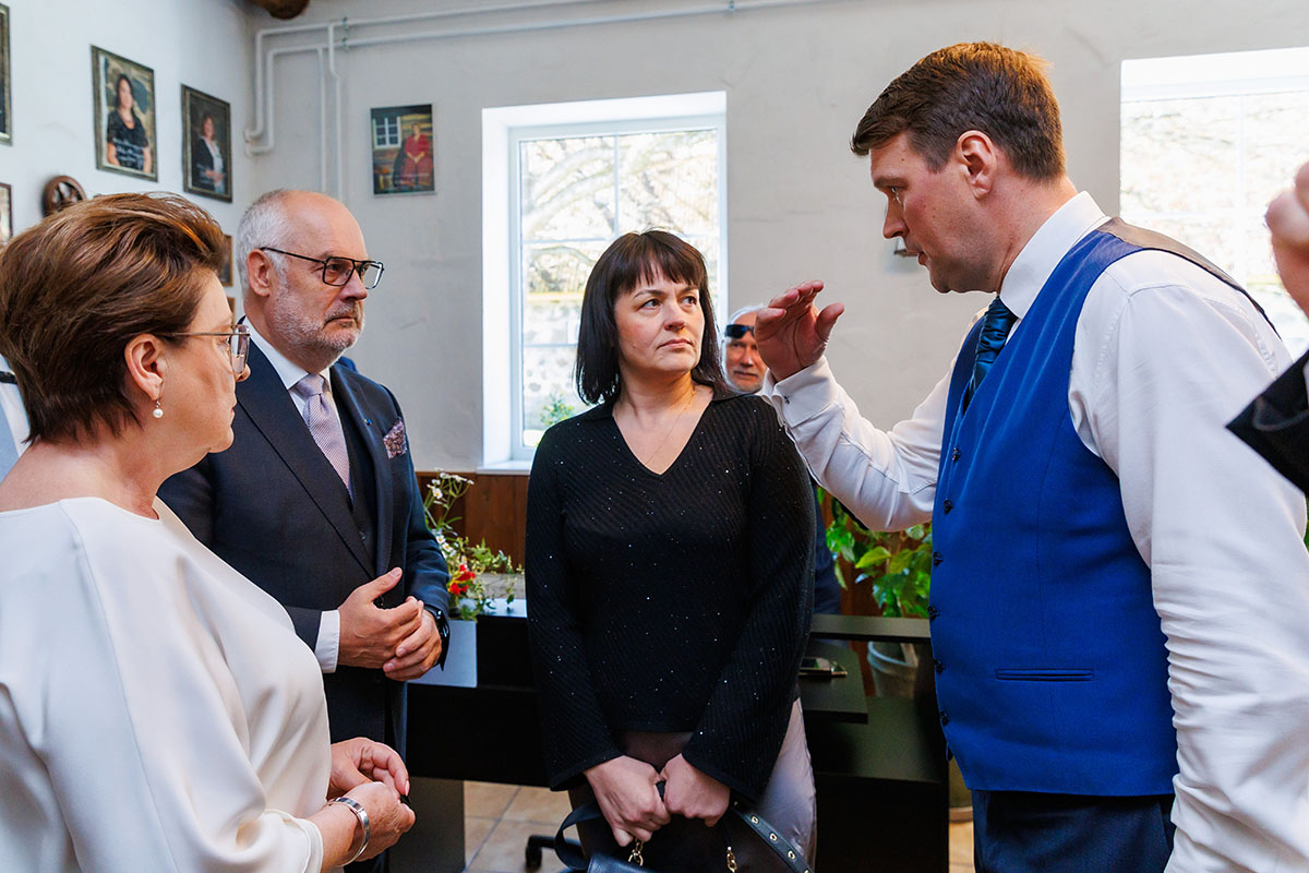 Mõisa käsitöökambri töötubade juhendaja ning mõisa külastusjuht Kärt Raudkivi kinkis Sirje Karisele endatehtud kõrvarõngad. Nii tema kui ka mõisa ja mõisakohviku InnAmorata töötajad tegid presidendipaariga ühispilte.