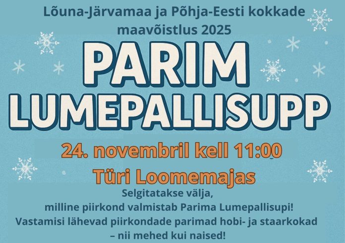 Põh­ja-Ees­ti toi­dup­ro­jek­ti võr­gus­ti­ku viis kok­ka, kes töö­ta­vad MTÜ Aren­dus­ko­da ja MTÜ Ida-Har­ju Koos­töö­ko­gu Lea­der-piir­kon­nas, võist­le­sid Tü­ril Lõu­na-Jär­va­maa Koos­töö­ko­gu ja Jär­va Aren­gu Part­ne­rid Lea­der-piir­kon­na viie ko­ka­ga lu­me­pal­li­su­pi val­mis­ta­mi­ses. Põh­ja-Ees­ti toi­dup­ro­jek­ti juht Eha Paas üt­les, et idee oli tuua unus­tu­se­hõl­ma va­ju­nud ma­gus­toit uues­ti esi­le. Maa­võist­lus an­dis ka või­ma­lu­se Jär­va­maa ja Põh­ja-Ees­ti kok­ka­de­le oma­va­hel koh­tu­da. Põh­ja-Ees­ti toi­du­piir­kon­nast osa­le­sid Har­ju­maalt And­rei Po­lišt­šuk Siid­ri­far­mist Ko­se val­last ning Lää­ne-Vi­ru­maalt Ma­ren Rits Sa­ga­di res­to­ra­nist, Ur­ve Hang Moe mõi­sast, Mar­ge Sa­lu­mäe Mäe­han­su ta­lust ja Lau­ri Loit res­to­ra­nist Wir­kes. Pi­me­hin­da­mi­se tu­le­mu­se­na võitis Ave-Triin Ei­de­mil­ler Pai­de Wa­ba­koh­vi­kust.