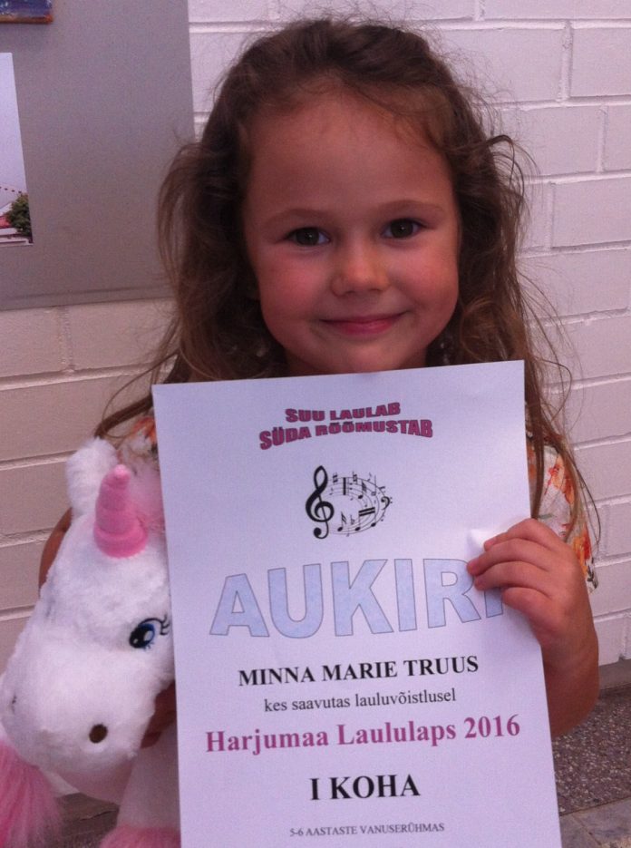 5-6aastaste tüdrukute seas võitis esikoha Minna Marie Truus Anija valla Pillapalu külast, kes esitas nii koduvalla kui maakonna konkursil laulu „Õnneseen“. 5aastase tüdruku lauluõpetaja on tema ema Kätlin Truus, kes on Rae valla Peetri koolis tegutseva Mamma Mia laulustuudio juhajata ja õpetaja. Ka Minna Marie Truus laulab seal neljandat aastat ning on osalenud Rae ja Anija valla lauluvõistlustel. Eelmisel aastal sai ta Harjumaa Laululapse konkursil oma vanuserühmas 2. koha.