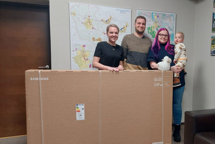 Au­hin­da käi­di ko­gu pe­re­ga val­la­ma­jas Aru­kü­las vas­tu võt­mas möö­du­nud nä­da­la tei­si­päe­val, 13. jaa­nua­ril. Seal õn­nit­les neid val­la­va­nem Bär­bel Sa­lu­mäe. Kui sel­gus, et või­duks saa­dud te­ler pe­rei­sa sõi­duau­tos­se ei ma­hu, ai­tas val­la­va­lit­sus sel­le võit­ja­le bus­si­ga ko­ju toi­me­ta­da.