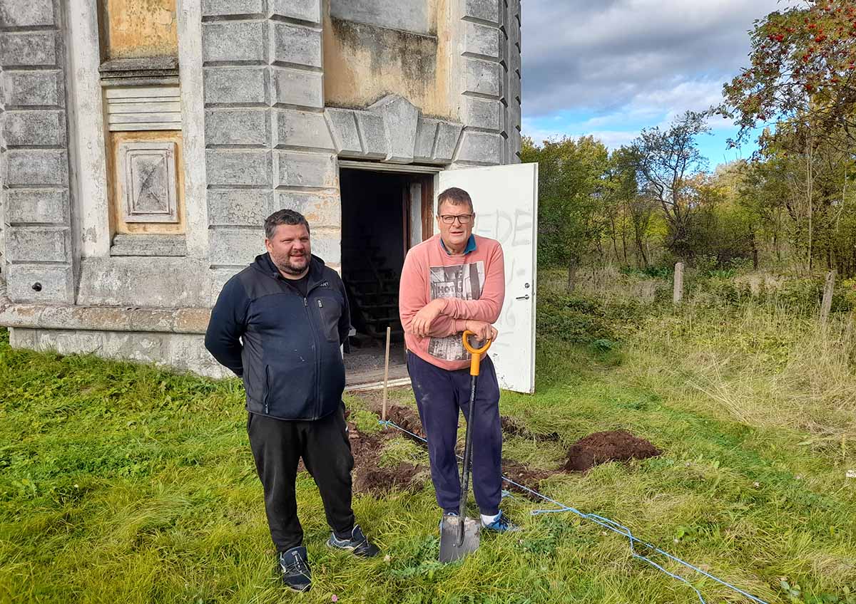 Koos Ants Kivimäega olid laupäeval veetorni elektri viimiseks kaablikraavi kaevamas Raasiku vallavanem Toomas Teeväli ja kohalik elanik Ragnar Vaitmaa.