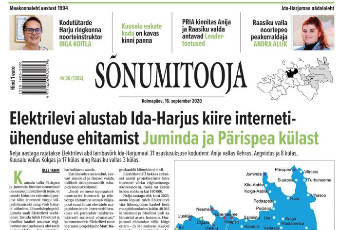 - Elektrilevi alustab Ida-Harjus kiire internetiühenduse ehitamist Juminda ja Pärispea külast;